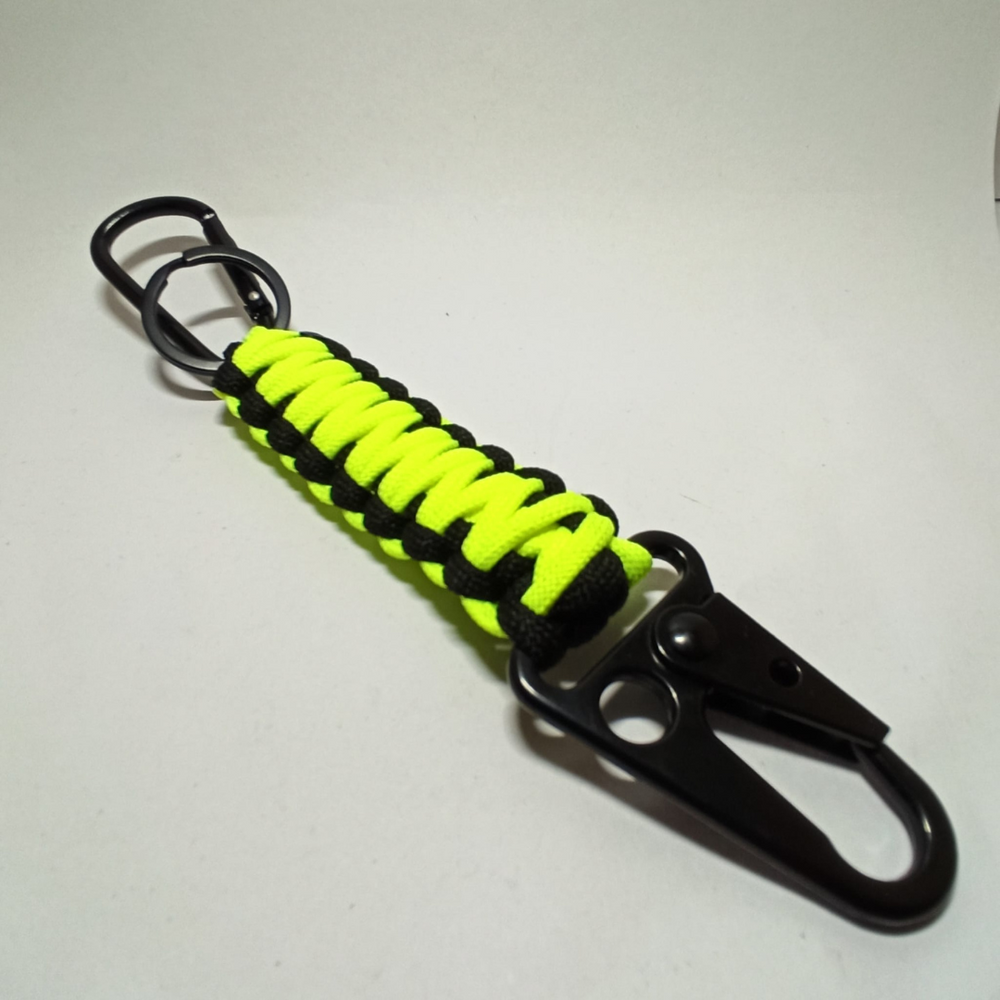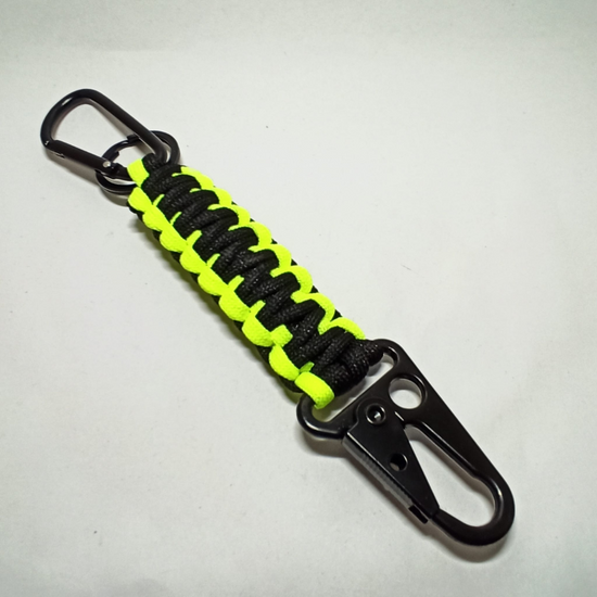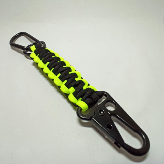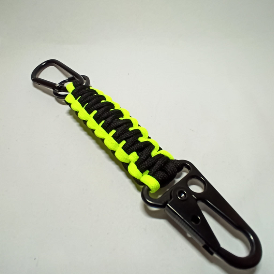 Portachiavi in paracord 32 fusi in 100% poliestere nero e giallo fluorescente.