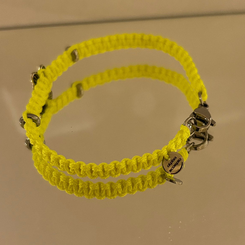 Braccialetto in paracord tinta unita in microcordino di poliestere dope-dyed 1,5mm . Il cordino paracord utilizzato è un 16 fusi in 100% polyestere dope dyed da 1,5mm di diametro. La chiusura è in acciaio così come il charm a cuore, la lavorazione del cordino è un intreccio paracord semplice. Le chiusure in acciaio sono recuperate da fine stock di un magazzino di accessori. Il filato utilizzato è ricavato da fine rocche stoccate avanzate da produzioni di lacci dope dye per gioielleria. Unisex, disponibile in varie misure.